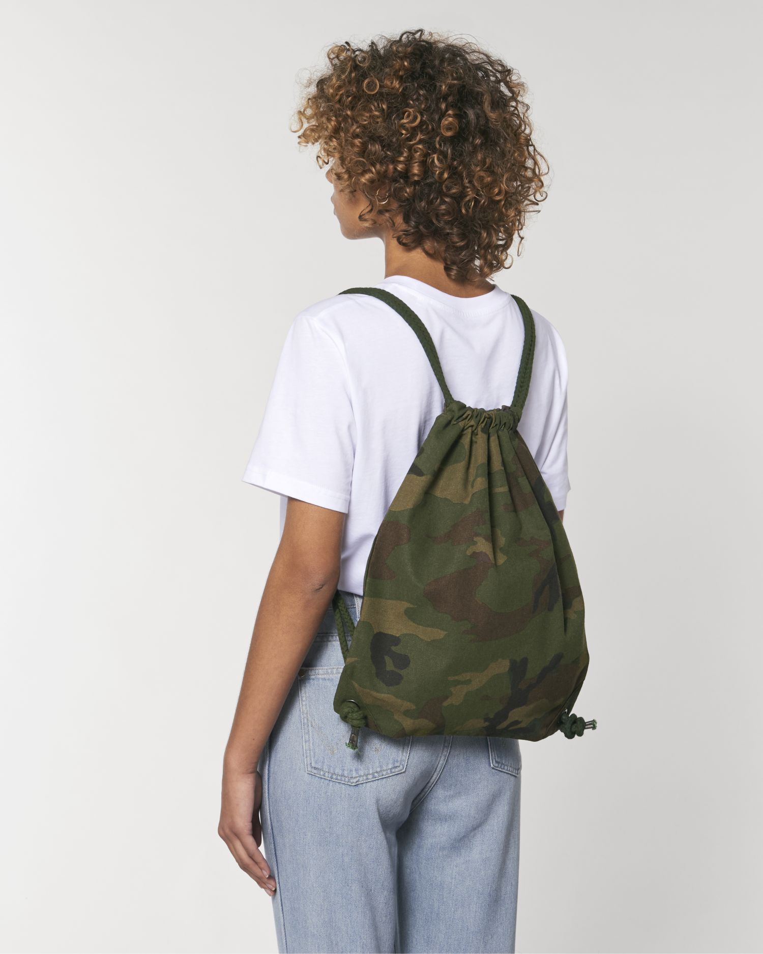 Plátěný batoh AOP. Nelze použít, nelze použít, nelze použít, plátno. Odolná, kvalitní povrchová úprava na přívodní liště šňůry Výztužné body na přívodní liště šňůry Silná šňůra s uzlíkovým koncem Bronzová kovová očka a špičky šňůry Trojúhelníkové výztuhy ve spodních rozích