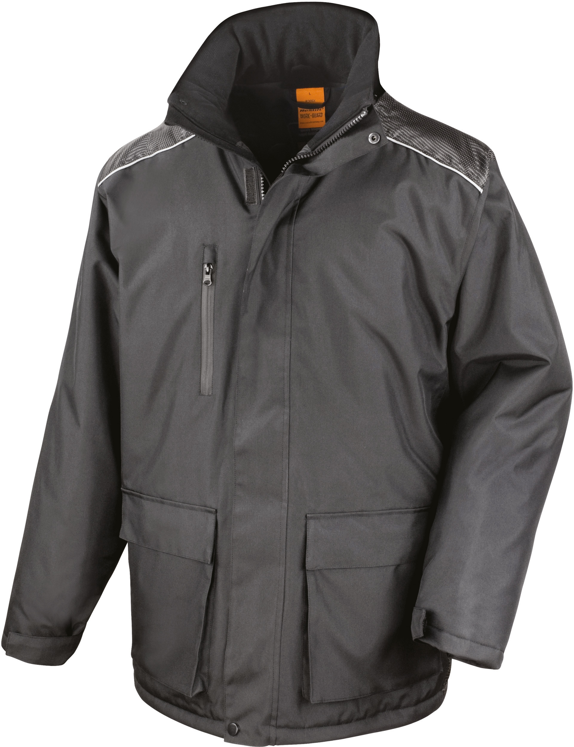 Vnější strana: 100% 300D Oxford polyester s PVC zátěrem. Podšívka: 100% polyester 210T taft. Zateplení: výplň 100% polyester. Vodotěsné do 2000 mm. Větrovka. Diamantově prošívaná podšívka. Zapínání na dvoucestný zip vpředu s klopou se zapínáním na suchý zip a patentky. Pletený podšitý límec. Nastavitelná a odnímatelná kapuce se zipem. Kontrastní sedlo z látky Dobby. Reflexní lem. Více kapes: přední kapsy s légou a zapínáním na suchý zip, boční kapsy pro udržení rukou v teple, vnitřní náprsní kapsa. Stahovací lem. Nastavitelné žebrované manžety se zapínáním na suchý zip. Odnímatelné táhla na všech uzávěrech zipů (zahrnuje 4 barvy taháčků). Široký střih, který poskytuje dobrou pohyblivost. Odolnost vůči nepříznivým povětrnostním podmínkám, optimální ochrana. Izolační plášť s tepelnou údržbou.