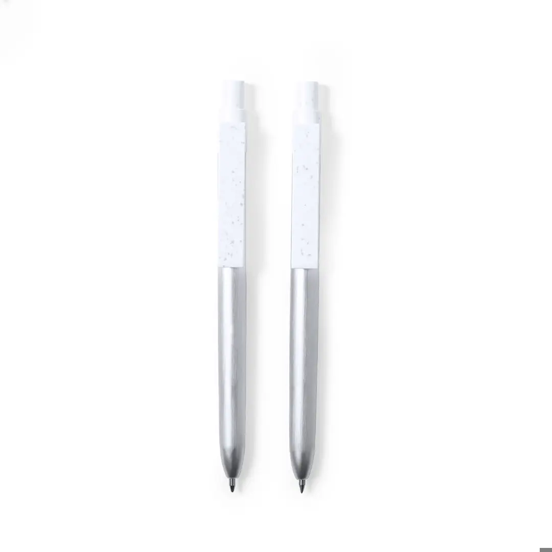 Set eco-friendly de bolígrafo y roller, fabricados en aluminio reciclado y con detalles en ABS reciclado (RABS). Incluye: Bolígrafo en aluminio reciclado de mecanismo pulsador, con cuerpo en color plateado y accesorios en blanco. Con distintivo aluminio reciclado en la parte superior del bolígrafo, cartucho jumbo y tinta azul. Roller en aluminio reciclado de mecanismo pulsador, con cuerpo en color plateado y accesorios en blanco. Con distintivo aluminio reciclado en la parte superior del roller, cartucho jumbo y tinta azul. Set presentado en estuche individual de diseño kraft con funda a juego. El origen del aluminio reciclado se encuentra en la reutilización casi infinita de uno de los materiales con mayor potencial de reciclabilidad sin perder sus propiedades. Esta característica lo convierte en un material eco-friendly de origen reciclado, fácilmente reciclable y de cuyos procesos de tratamiento y desechos para la obtención del material se pueden obtener nuevos recursos reutilizables, consumiendo menos energía en su fabricación, entre otros factores de sostenibilidad. Certificación GRS (Global Recycled Standard / Estándar de Reciclaje Global), que garantiza el origen reciclado del material usado para fabricar el producto.