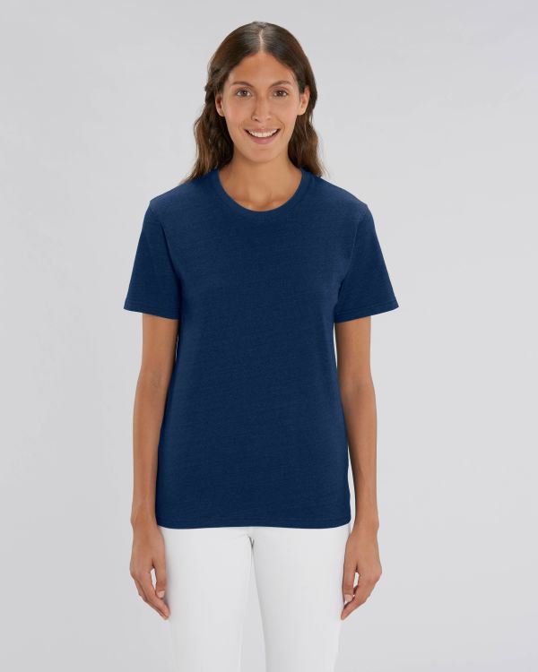 Unisex džínové tričko. Regular fit, kulatý výstřih, krátký rukáv, žerzejový úplet. Vypasovaný rukáv 1x1 žebrovaný límec Hlavní tkanina vnitřní předpětí na límci Široký dvojitý steh na manžetách a lemu Narušený efekt na všech švech Oděv barvený indigem, vzhled každého oděvu se může lišit, dbejte na náš štítek00x00 doporučení pro tisk